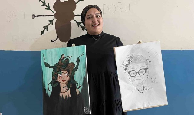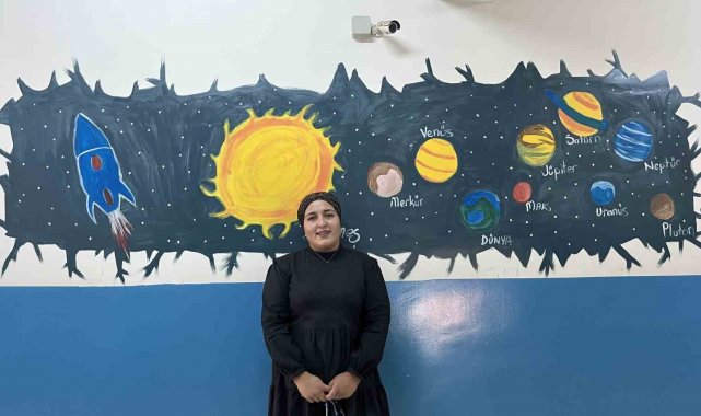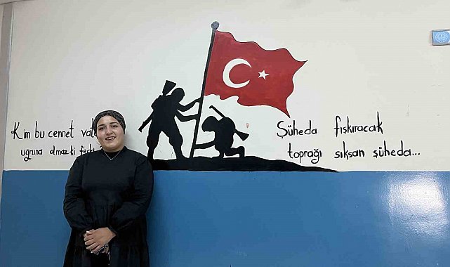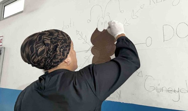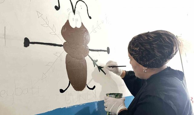 Çizdiği resimler ile okul duvarlarına estetik bir görünüm kazandırıyor
