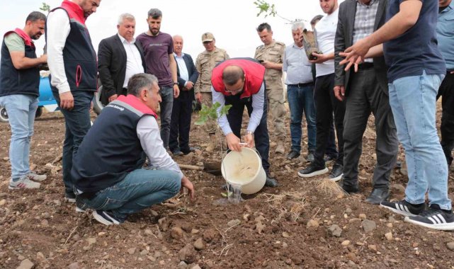 Şırnak'ın Cizre ilçesinde proje kapsamında badem ve fıstık yetiştiriciliğinin gelişimi için 50 çiftçiye fidan dağıtımı yapıldı. İlçe Kaymakamı Ahmet Vezir Baycar ve beraberindeki kurum müdürleri, fidanların dikildiği alanı inceledi.