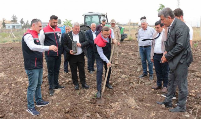 Cizre'de 2,5 milyon TL değerinde 50 çiftçiye verilen badem ve fıstıkların dikimi yerinde inceleme