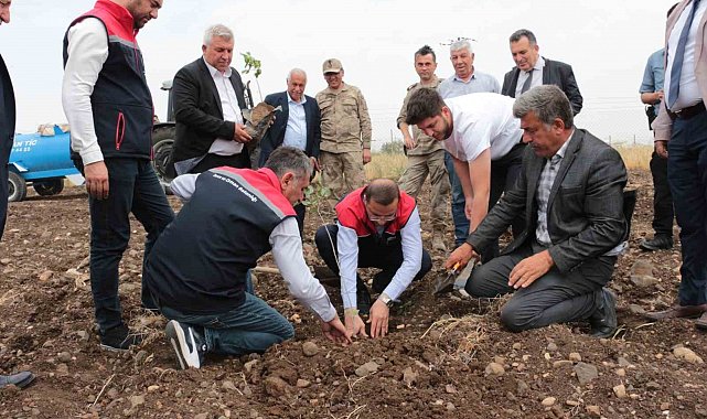 Sanayi ve Teknoloji Bakanlığı Güneydoğu Anadolu Projesi (GAP) Bölge Kalkınma İdaresi Başkanlığı, İlçe Tarım ve Orman Müdürlüğü'nce yürütülen 2.5 milyon TL tutarında badem ve fıstık yetiştiriciliği geliştirilmesi için 50 çiftçiye fidanları dağıtıldı. İlçe Kaymakamı Ahmet Vezir Baycar ve beraberindeki kurum müdürleri, fidanların dikildiği alanı inceledi.