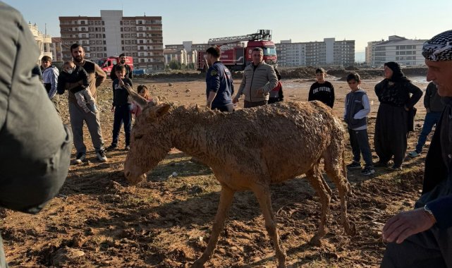 Şırnak'ın Cizre ilçesinde bataklıkta mahsur kalan iki eşek, itfaiye ekiplerin çalışmasıyla kurtarıldı.