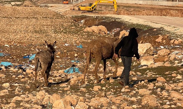 Cizre'de bataklığa saplanan eşekler kurtarıldı