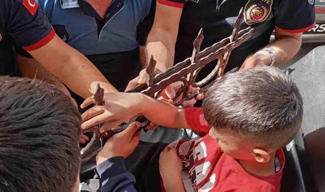 Şırnak'ın Cizre ilçesinde eline demir korkuluk saplanan 8 yaşındaki çocuk, itfaiye ekiplerince kurtarıldı.