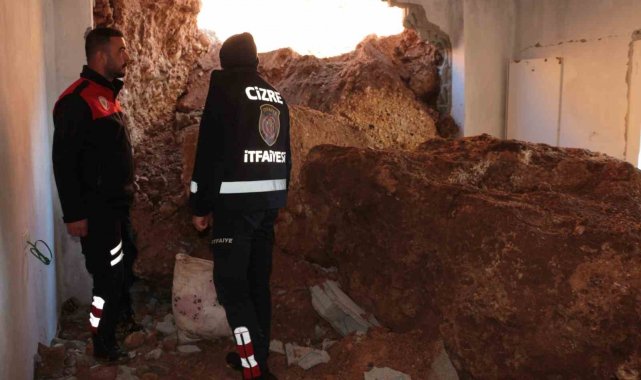 Şırnak'ın Cizre ilçesinde meydana gelen heyelanda, yamaçtan kopan dev kaya parçaları bir evin üzerine düştü. Olay sırasında evde bulunan 5 kişilik aile, saniyelerle ölümden kurtuldu.