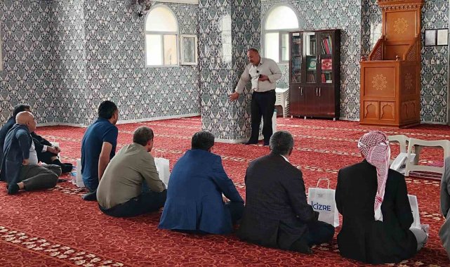 Hz. Nuh Nebi Camisinde düzenlenen seminere, Cizre Kaymakamı Ahmet Vezir Baycar, İlçe Müftüsü Süleyman Baran ve Diyanet İşleri Başkanlığının düzenlediği 2025 yılı hac organizasyonu kapsamında Cizre'den bu yıl hacca gidecek olan hacı adayları katıldı.
