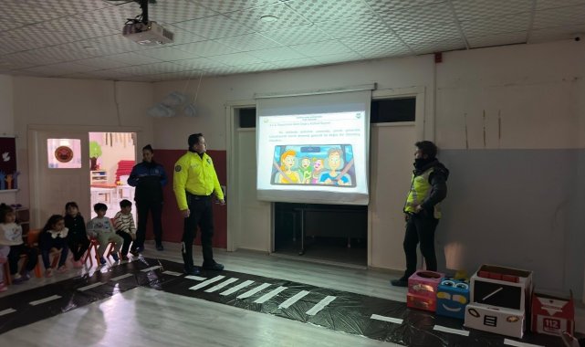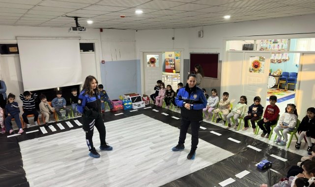 Toplum Destekli Polislik Büro Amirliği ile Trafik Tescil ve Denetleme Büro Amirliği ekipleri, Zübeyde Hanım Anaokulunu ziyaret ederek polislik mesleği, genel güvenlik kuralları ve trafik bilinci konularında öğrencileri bilgilendirdi. Etkinlik kapsamında öğrencilerle eğitici trafik uygulaması yapılırken, temel trafik işaretleri ve güvenli yaya davranışları uygulamalı olarak anlatıldı. Polis ekipleri, minik öğrencilerle birebir sohbet ederek onların merak ettiği soruları yanıtladı ve güvenli yaşam farkındalığını pekiştirdi.