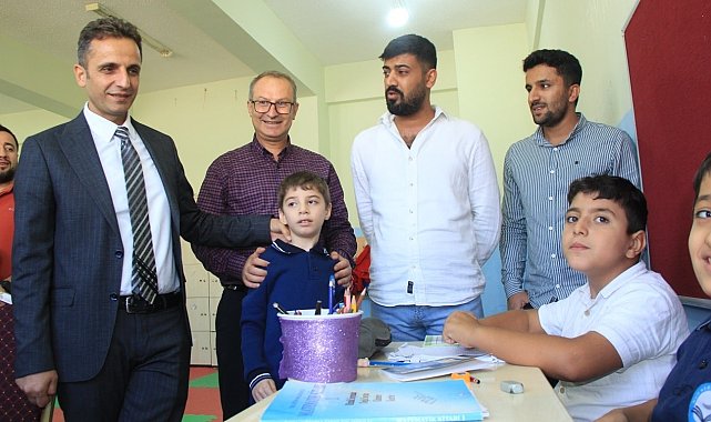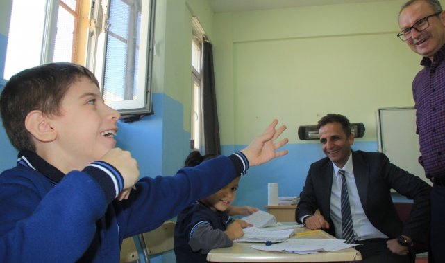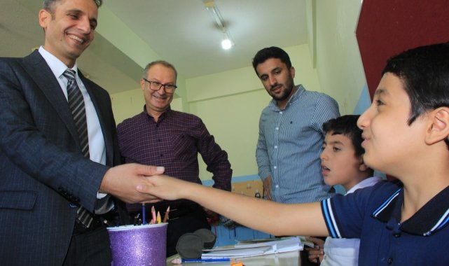 Şırnak'ın Cizre İlçe Milli Eğitim Şube Müdürü Mevlüt Gayirinal, Nuh Nebi İlkokulu özel eğitim sınıflarında eğitim gören çocuklarla bir araya geldi.