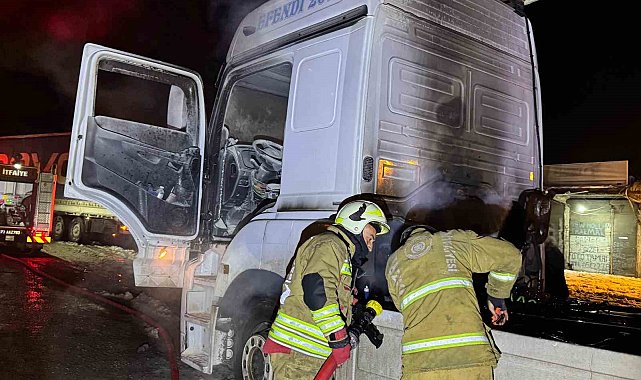 Araçtan alevlerin yükseldiğini gören Tır sürücüsü, aracı yol kenarına çekerek durumu itfaiyeye bildirdi. 112 Acil Çağrı Merkezine yapılan ihbar üzerine bölgeye sevk edilen itfaiye ekipleri tarafından söndürülen yangından sonra TIR'da büyük çapta maddi hasar oluştu.