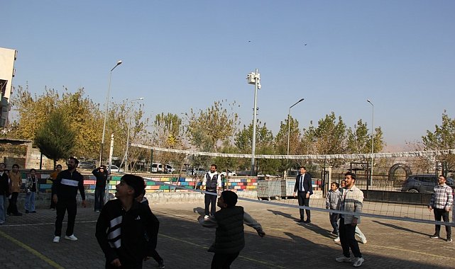 Şırnak'ın Cizre İlçe Milli Eğitim Müdürü Şahan İke ve Şube Müdürü Mevlit Gayirinal, Vatan Ortaokulu öğrencileri ile beden eğitimi dersinde bir araya gelip hem zaman geçirdi hem de çocuklarla voleybol maçı oynadı.
