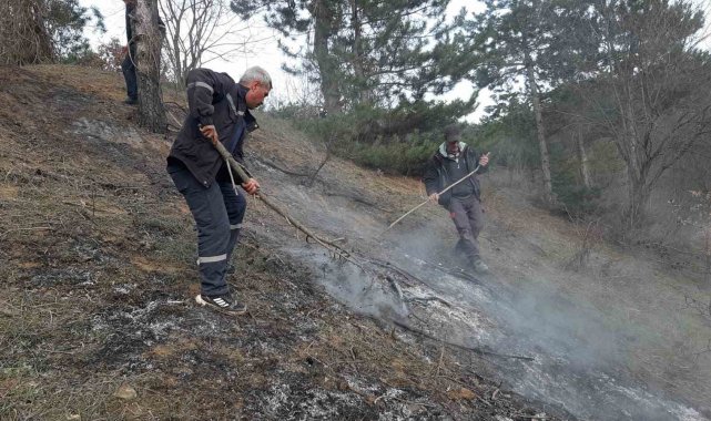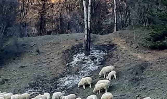 Bolu'da ormanlık alanda çıkan örtü yangını, koyunlarını arazide otlatan çoban tarafından söndürüldü.