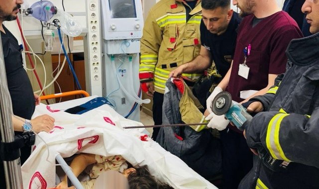 Hatay'da çocuğun bel kısmına saplanan demir, itfaiye ekipleri tarafından hastanede kesilerek çıkartıldı.