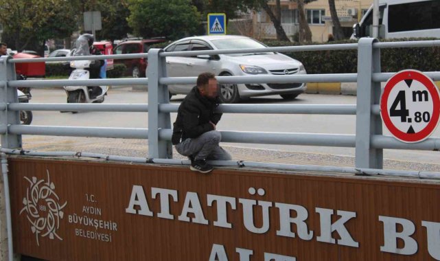 Olay, Efeler ilçesi Atatürk Bulvarı'nda bulunan Atatürk Bulvarı Alt Geçidi'nde meydana geldi. Edinilen bilgiye göre, İ.G. isimli vatandaş, bir anda alt geçidin korkularına çıktı. Kendini aşağıya atacağını söyleyen şahsı gören vatandaşlar durumu 112 Acil Çağrı Merkezi'ne bildirdi. İhbar üzerine bölgeye polis, itfaiye ve sağlık ekipleri sevk edildi. Kısa sürede olay yerine gelen ekipler, vatandaşla konuşmaya çalıştı. Polis ekipleri yolu ve alt geçidi trafiğe kapatırken, itfaiye ekipleri de atlama ihtimaline karşı can kurtarma minderi açtı. Ailevi sorunlar yaşadığı ve çocuklarını göremediği öğrenilen İ.G., polis ekiplerinin uzun uğraşlarının ardından ikna edildi. Korkuluklardan indirilen İ.G., ifadesi alınmak üzere karakola götürüldü.