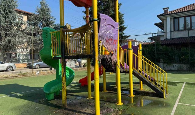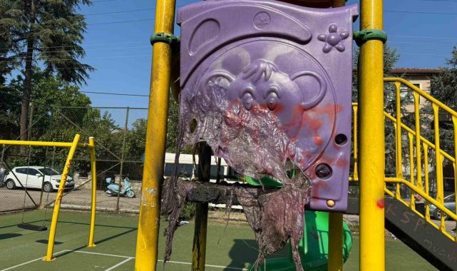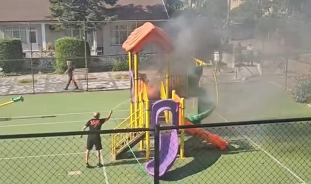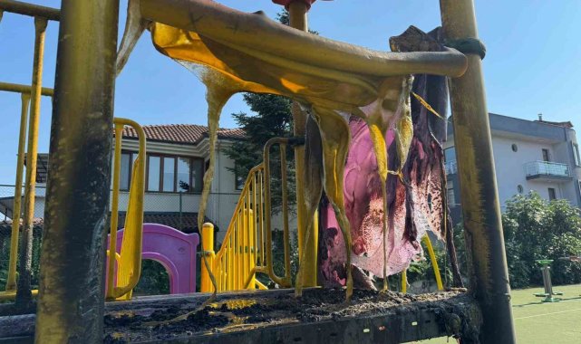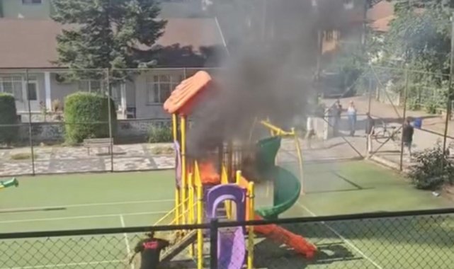 Düzce'de çocuk parkında bulunan kaydırakta bilinmeyen bir nedenle yangın çıktı. Alevler, çevredeki vatandaşlar ve itfaiye ekipleri tarafından söndürüldü.