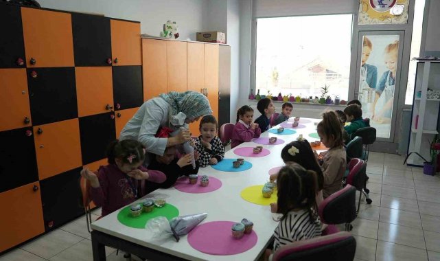Düzce Belediyesi Belka Kreş ve Gündüz Bakımevinde eğitim gören minikler, Düzce Belediyesi Çocuk Üniversitesi tarafından 5-14 yaş arası çocuklara sunulan farklı atölyeleri yerinde deneyimleme imkanı buldu. İlk olarak çocuk üniversitesini gezen minikler daha sonra mutfak atölyesinde muffin yapmak için kolları sıvadı. Kendilerine verilen malzemeleri sırasıyla kullanarak keklerin nasıl yapıldığını deneyimleyen öğrenciler, aynı zamanda keyifli zaman geçirdi.
