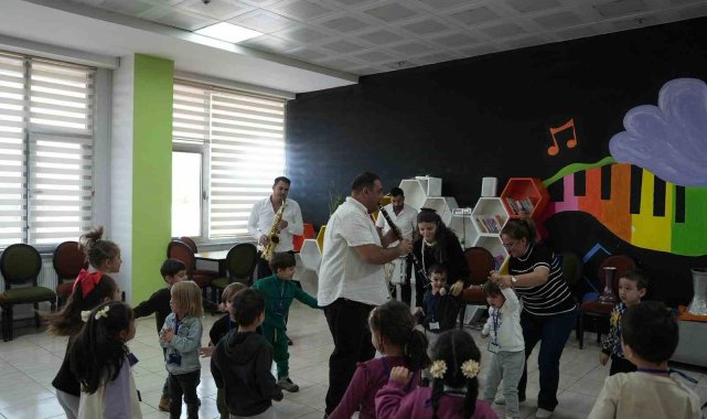 Ardından ritim atölyesine geçen minikler, burada bulunan müzik aletlerini inceleyerek, kullanmaya çalıştı. Öğretmenler tarafından çalınan müziklerle coşan öğrenciler, doyasıya eğlendi. Minikler son olarak tasarım atölyesini ziyaret ederek yaptıkları ve boyadıkları maskelerle hünerlerini sergileyerek eğlence dolu bir gün geçirdi.