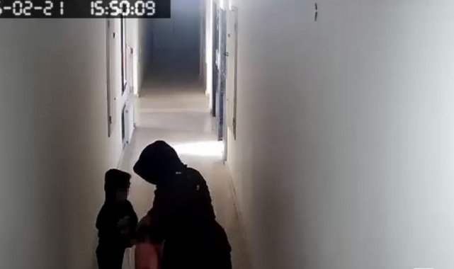 Mardin'in Nusaybin ilçesinde bir binaya giren hırsız, yanındaki küçük çocuğa aldırış etmeden kapı önündeki ayakkabıları poşete doldurarak çaldı.