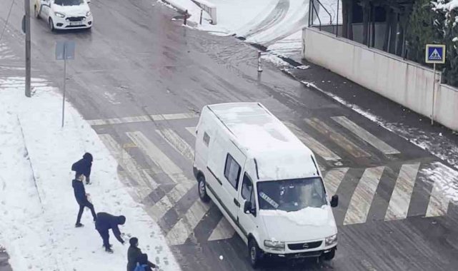 Hava sıcaklığının 1 derece ölçüldüğü Kocaeli'de, olumsuz hava şartları dolayısıyla okulları tatil olan çocuklardan bazıları soluğu sokakta aldı. Sokağa çıkan bir grup çocuk, seyir halindeki araçlara kar topu attı. Vatandaş kamerasına yansıyan görüntülerde, bir servisin durduğu, araçtan inen sürücü ve yolcuların da çocuklara kar topu atarak karşılık verdiği anlar yer aldı.
