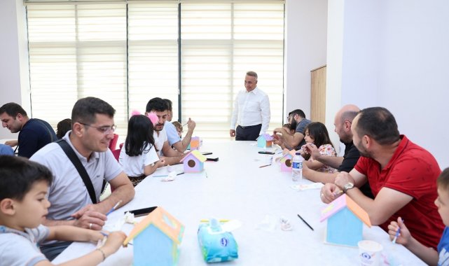 Minikler, kendileri için hazırlanan kuş kafeslerini babalarıyla beraber boyadı. El becerilerini geliştirmenin yanı sıra babalarıyla birlikte keyifli zaman geçiren çocuklar kuş kafeslerini hatıra olarak eve götürdü.