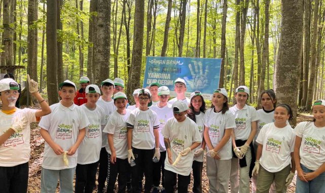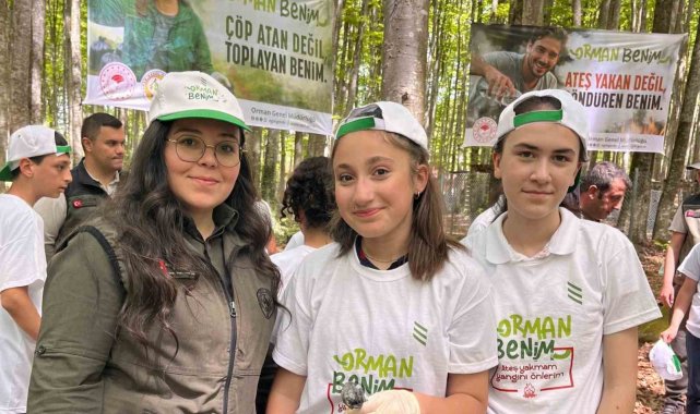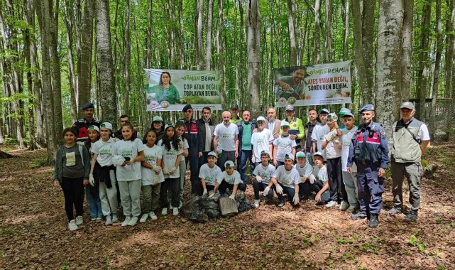 Gölcük'te çocuklar, 81 ilde düzenlenen "Orman Benim" kampanyasıyla çöp ve atıkları temizledi.