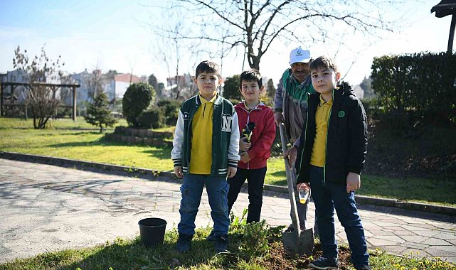 Çayırova'da ilk ve ortaokul öğrencileri, belediye personelleriyle birlikte Şehit Polis Ahmet Alp Taşdemir Mesire Alanı'nda fidanları toprakla buluşturdu.