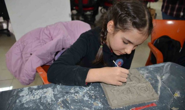 Öğrenci Öykü Özkulsuz ise, "Buraya seramik kursuna geldik öğretmenlerimizle birlikte çok şeyler öğrenerek farklı türlerde hayvanlar veya başka şeyler öğreniyoruz. Çamurla farklı şekillerle farklı şeyler yapıyoruz" dedi.