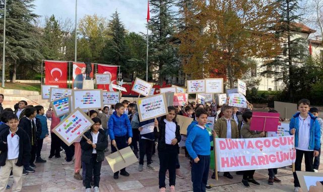 Bilecik'te ilkokul öğrencileri 'Çocuk Hakları Günü'nde hazırladıkları pankartlarla Cumhuriyet Meydanı'na yürüdüler.