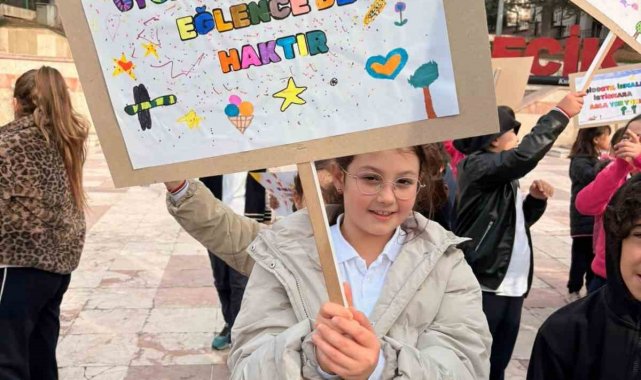 Çocuklar hazırladıkları pankartlarla günlerini kutladı