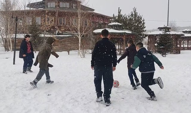 Çocuklar karın tadını kar topu ve futbol oynayarak çıkardı