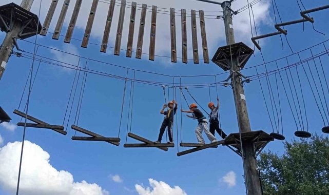 Sakarya Büyükşehir Belediyesi, Yenikent Şehir Ormanı'nın kalbinde bulunan Macera Park'ta minik misafirlerini ağırlamaya devam ediyor. Adrenalin dolu parkurlarda ekip çalışmasını, özgüveni ve fiziksel gelişimini artıran çocuklar, farklı deneyimlerle hem eğleniyor hem de öğreniyorlar.