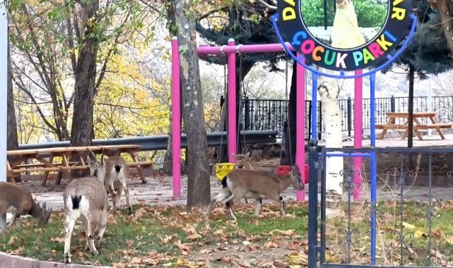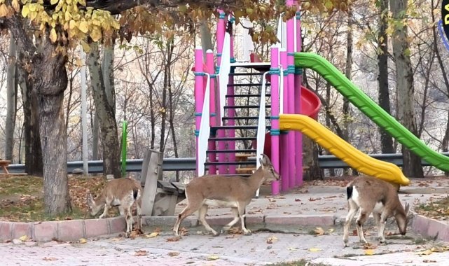 Sabah saatlerinde Elazığ Caddesi üzerindeki, çocukların yoğun olarak kullandığı oyun alanına inen yaban keçileri, çocukların okulda olduğu sakin saatleri fırsat bilerek parkı adeta mesken tuttu. Parkta otlayan ve çevreyi meraklı bakışlarla inceleyen yaban keçileri, vatandaşların dikkatini çekti. Doğal yaşamın ilçe merkezine kadar uzandığı bu anlar, çevredeki vatandaşlar tarafından cep telefonu kameralarıyla görüntülendi.