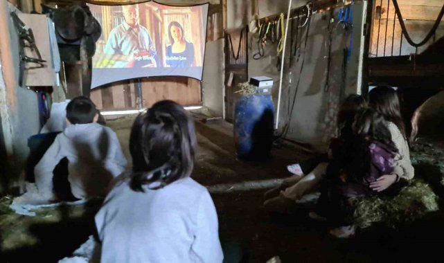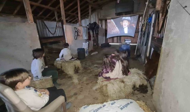 Karabük'ün Safranbolu ilçesinde yer alan Oğuzhan At Çiftliğinde oluşturulan sinema ile çocuklar yarı yıl tatilinde keyifli zaman geçirirken, cep telefonu, tablet ve sosyal medya gibi alışkanlıklardan uzak duruyor.