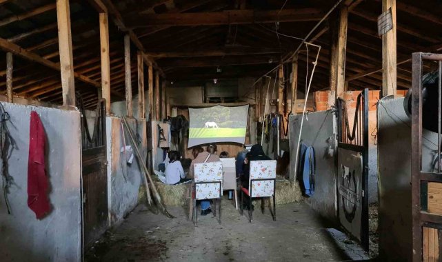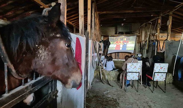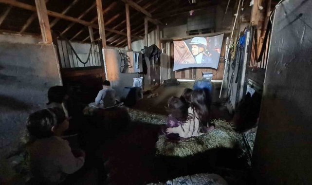 Atlarla aynı ortamda sinema izlemenin tadını çıkaran çocuklar, cep telefonları, tabletler ve sosyal medyadan uzaklaşarak doğayla bağ kuruyor.