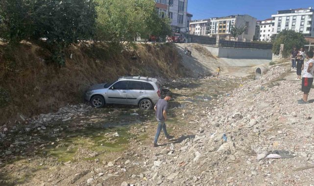 Tekirdağ'ın Kapaklı ilçesinde çocuklar tarafından el freni indirilen otomobil dereye uçtu.