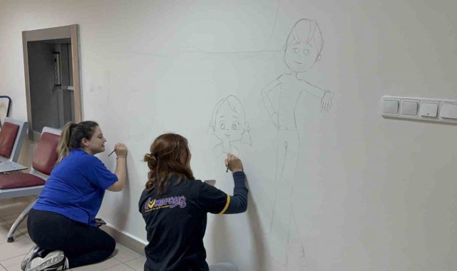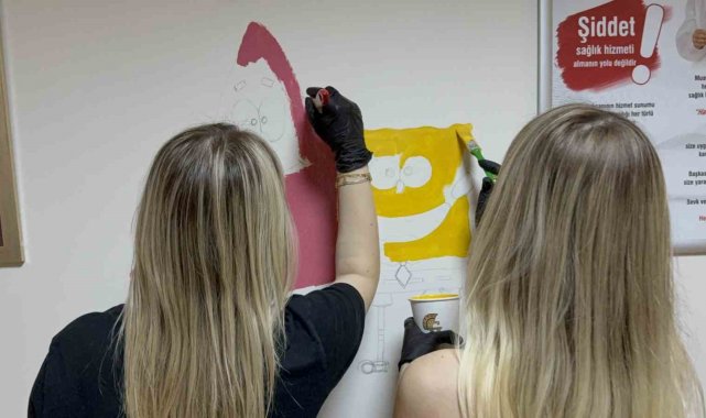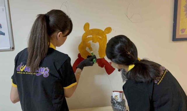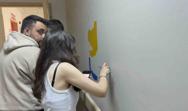 Düzce'de çocukların hastane korkusuna aşabilmeleri için Düzce Üniversitesi öğrencileri kolları sıvalayarak çocuk Hastanesi'nde boya çalışması gerçekleştirdi.
