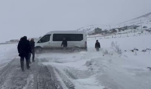 Ardahan'da etkili olan kar yağışı ve tipi bir öğrenci servisinin yol dışında mahsur kalmasına neden oldu.