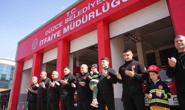 Düzce Belediyesi, 23 Nisan Ulusal Egemenlik ve Çocuk Bayramı etkinlikleri kapsamında Yunus Emre (9) ve Ahmet Arif Demirci (7) isimli kardeşlerin itfaiyeci olma hayallerini gerçeğe dönüştürdü. İtfaiye Müdürlüğü'nde misafir edilen kardeşler, sabah duasında itfaiyecilerle bir araya geldi.