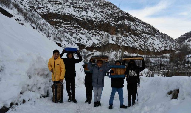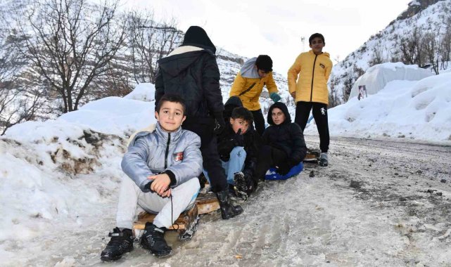 Şırnak'ın Beytüşşebap ilçesinde kar kalınlığı 2 metreye ulaşınca çocuklar kapanan yolları kayak pistine çevirdi. Kilometrelerce uzanan yolları kayak pisti yapıp kızaklarla günlerdir kayan çocuklar, tatilin keyfini çıkarıyor. İlçeye bağlı Aşağıdere köyündeki çocuklar ve yetişkinler güneşli havalarda kayak yapıyor. Eylem Turan günlerdir karda kaydıklarını çok eğlendiklerini söyledi. Turan, ''Çok güzel, kayıp eğleniyoruz'' dedi.