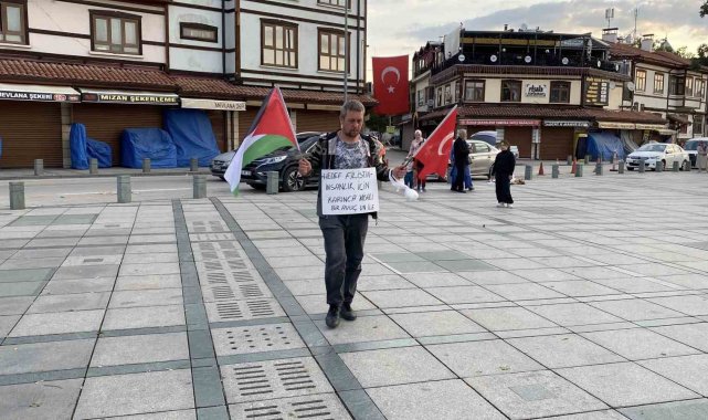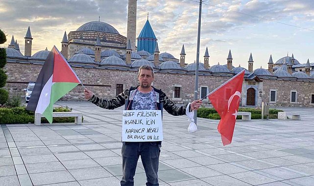 Eskişehir'in Tepebaşı ilçesi Çamlıca Mahallesi'nde tuhafiyecilik yapan İrfan Başkaya (43), İsrail saldırılarına karşı Gazze'ye destek vermek amacıyla 5 gün önce tek başına yürüyüş başlattı. İki çocuğunu eşine emanet Başkaya, Babalar Günü'nde Konya'ya ulaştı. Sultan Selim Camisi'nde sabah namazını kılan Başkaya, Konya'dan Adana'ya doğru yola çıkacağını belirtti.