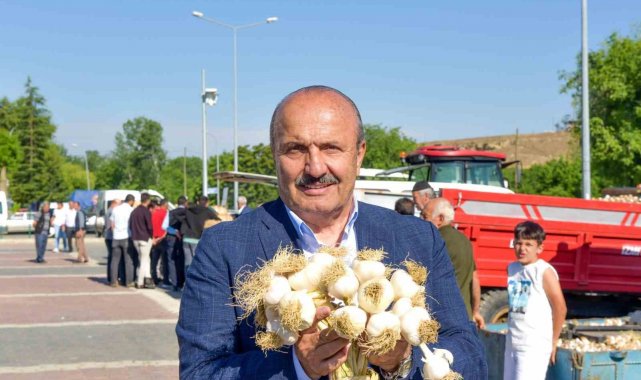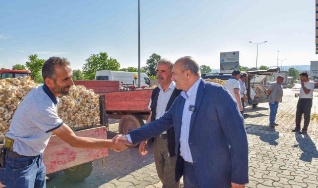 Başkan Arslan, pazarı gezerek sarımsak üreticilerine gezerek bereketli bir sezon geçirmeleri temennisinde bulundu.