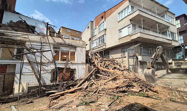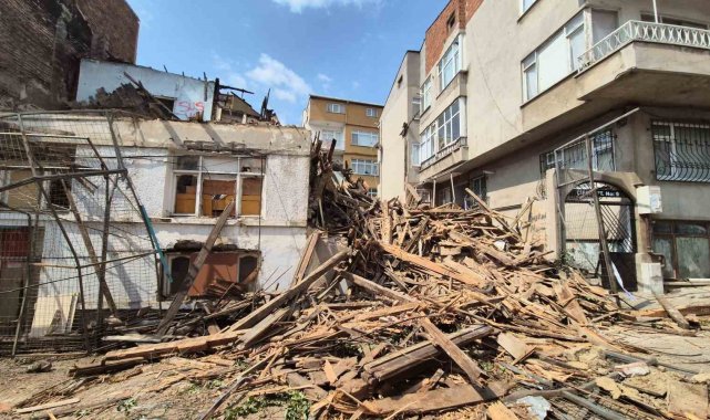 Çökme tehlikesi bulunan metruk bina yıkılıyor