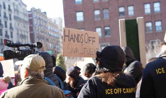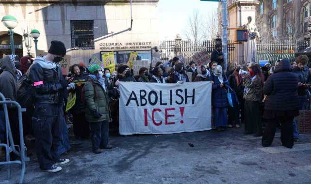 ABD'de Trump yönetiminin Göçmenlik ve Gümrük Muhafaza Birimi'ne (ICE) yönelik uygulamalarına tepkiler sürerken, New York'taki Columbia Üniversitesi öğrencileri de kampüs önünde geniş katılımlı bir protestoya imza attı. Soğuk havaya rağmen yüzlerce öğrencinin katıldığı gösteride, üniversite yönetiminin ICE ile iş birliği yaptığı iddiaları gündeme getirildi. Protestocular, Columbia Üniversitesi'nin öğrenci ve akademik topluluğu korumakta yetersiz kaldığını savundu. Üniversite önünde toplanan öğrenciler, "ICE OUT" yazılı pankartlar taşıyarak ICE aleyhine sloganlar attı. Gösteri boyunca "ICE'ı kapatın" çağrıları sık sık tekrarlandı. Protestocular, Trump yönetiminin göçmenlik politikalarının kampüsler üzerinden meşrulaştırılmaya çalışıldığını ileri sürdü.