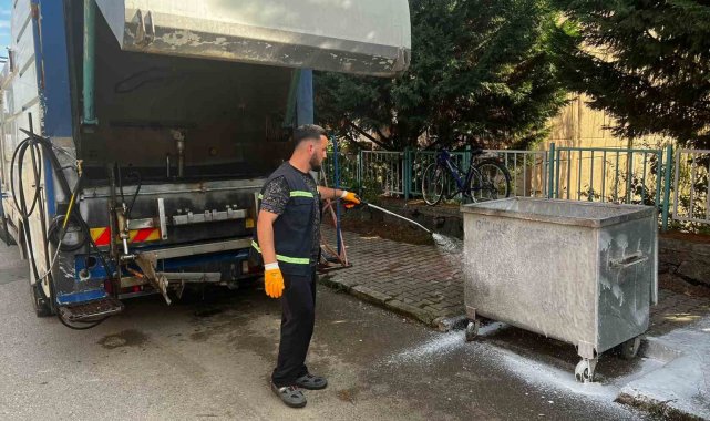 Gölcük'te ilçe genelinde bulunan çöp konteynerler, ekipler tarafından düzenli olarak yıkanarak dezenfekte ediliyor.