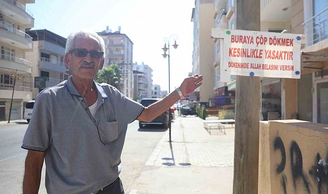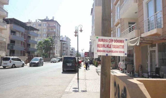 Hatay'da iş yerinin olduğu apartman köşesine sürekli çöp atılmasından usanan esnaf Hasan Günel, apartman sakinleriyle birlikte ''Buraya çöp dökmek kesinlikle yasaktır, dökenin Allah belasını versin' sözlerinin olduğu tabelayı asarak sürekli düzensizce dökülen çöp sorununa son verdi.