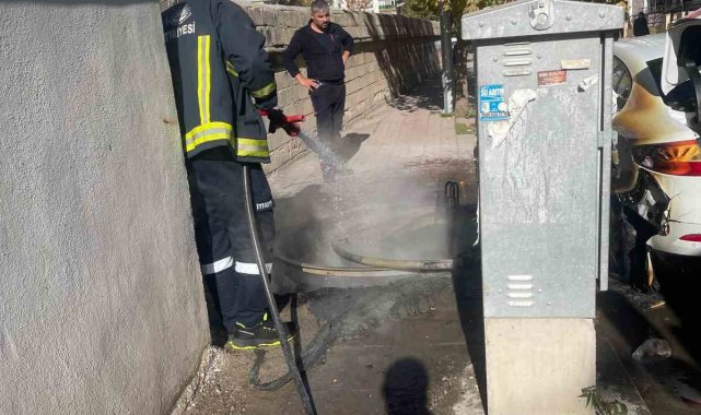 Van'ın İpekyolu ilçesinde çöp konteynerine atılan yanıcı madde, bir otomobile sıçrayarak maddi hasara yol açtı.
