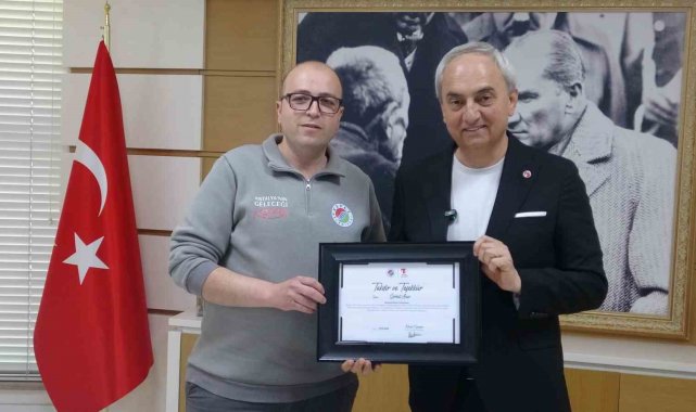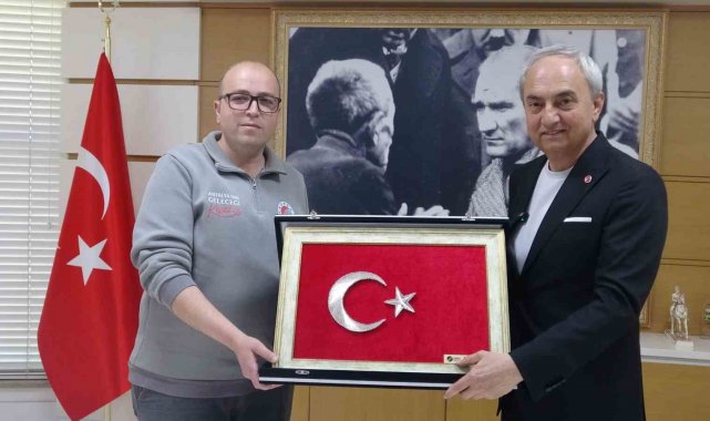Çöpte bulduğu bayrağı alıp temizleyen ve kamyonuna asan Kepez Belediyesi çalışanına başkandan plaket