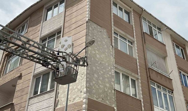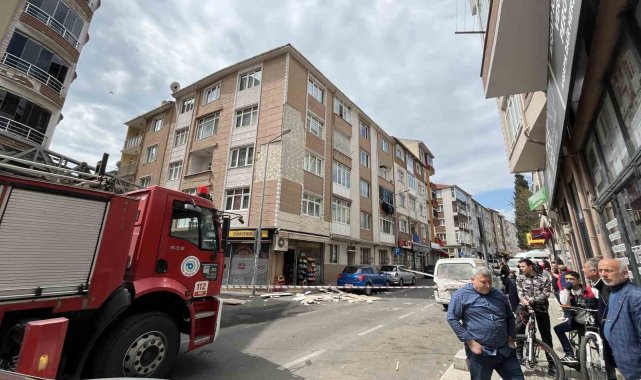 Tekirdağ Çorlu Şeyh Sinan Mahallesi'nde bulunan 4 katlı bir apartmanın dış cephe kaplamaları çöktü.