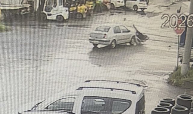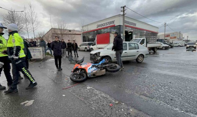 Çorlu'da otomobille çarpışan motosikletli yaralandı: Kaza anı kamerada