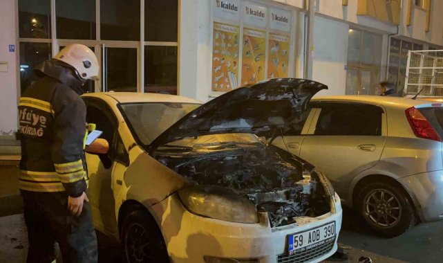 Tekirdağ Çorlu'da park halindeki bir otomobilde yangın çıktı.