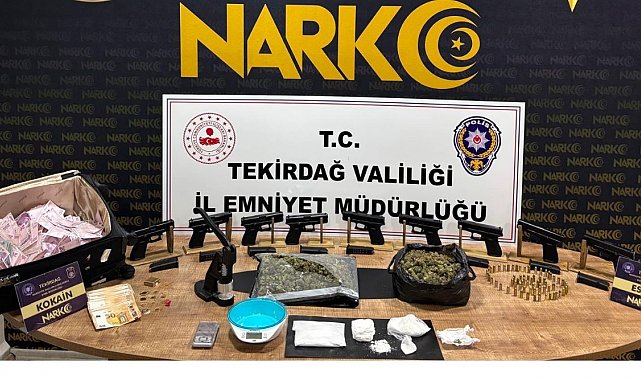 Tekirdağ Çorlu'da düzenlenen narkotik operasyonunda esrar, kokain, ruhsatsız tabancalar ve yüklü miktarda para ele geçirildi.