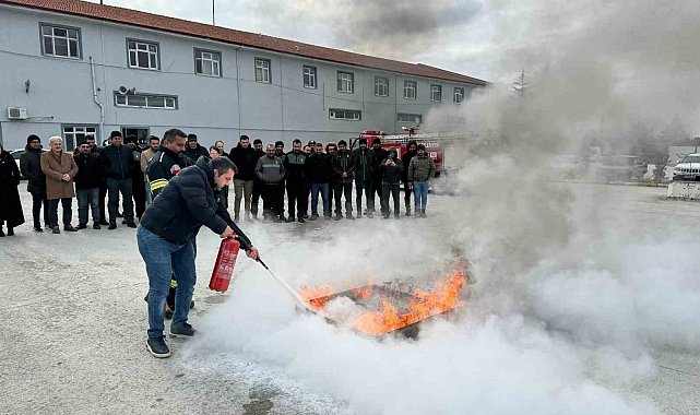 Eğitimin ikinci bölümünde ise hem evde hem de işyerlerinde meydana gelebilecek yangınlar ve yangınlara müdahaleler konusunda uygulama yapıldı. İtfaiye Müdürlüğü Eğitim Sorumlusu Ömer Darıcı ve itfaiye personeli tarafından yangın tüpünün kullanma şekli, yangın anında yapılması gerekenler anlatıldı. Mutfakta oluşabilecek yangınlara da uygulamalı olarak müdahale şekilleri anlattı.